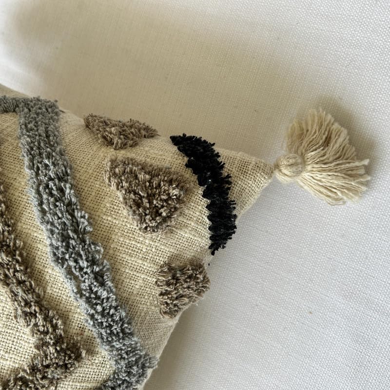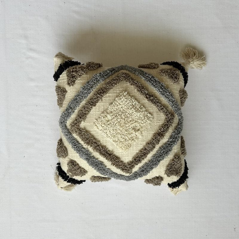 Boho Tufted Geometric Cushion Cover with Tassels – Handwoven Cotton Throw Pillow for Sofa & Living Room Décor